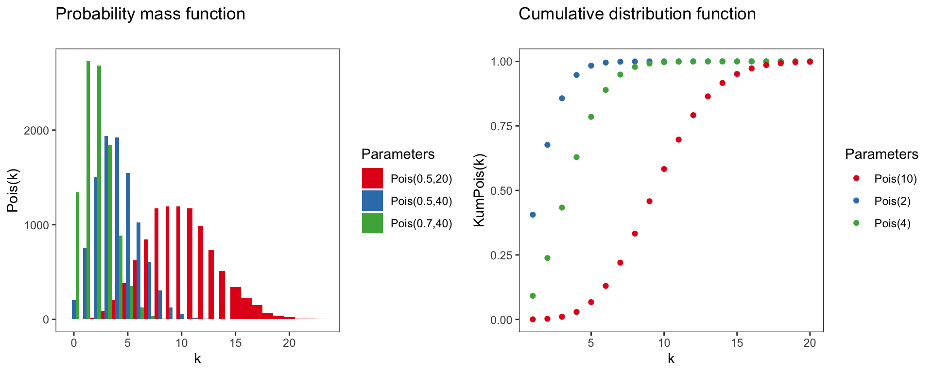 \(\begin{aligned} Pois(k) = P(X=k \mid \lambda) = \frac{\lambda^{k}e^{-\lambda}}{k!} \end{aligned}\)