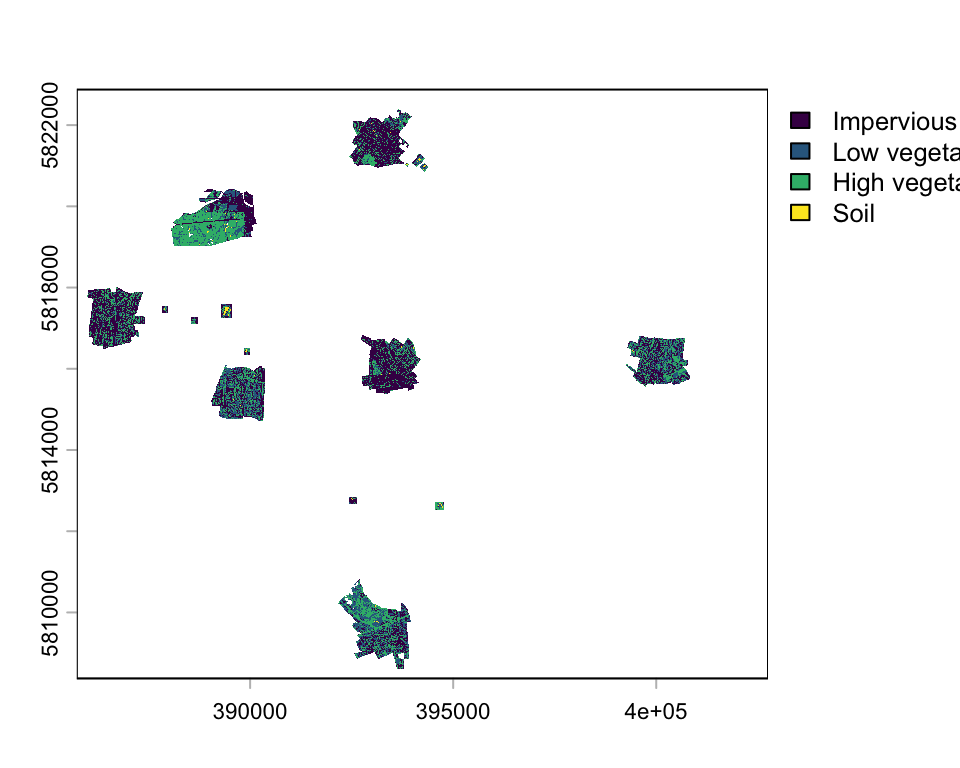 levels=c("Impervious", "Low vegetation", "High vegetation", "Soil"))