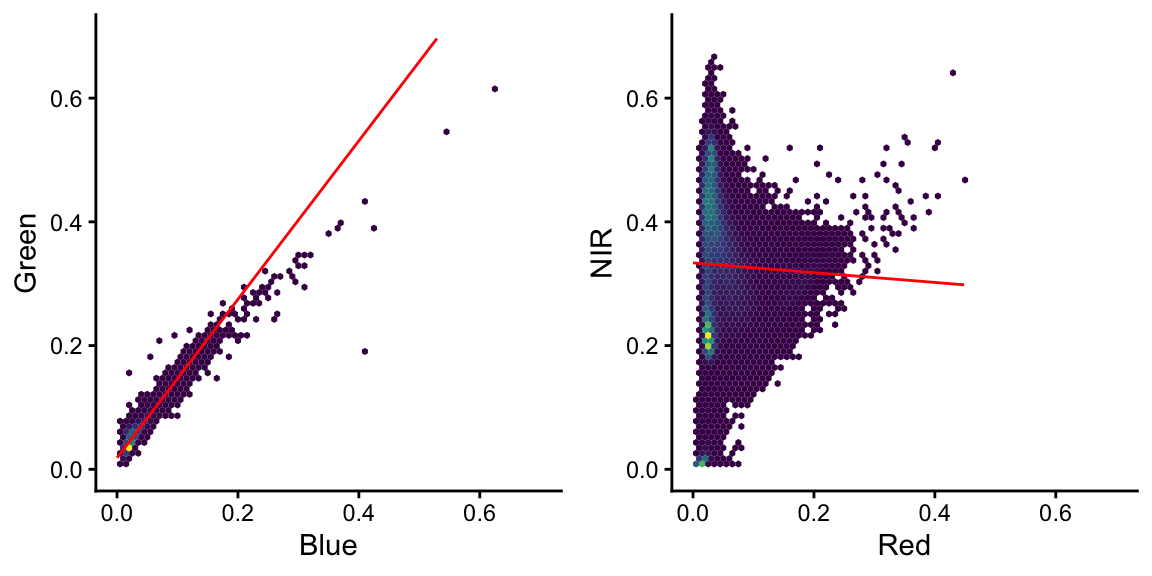 xlab("Red") + ylab("NIR") +