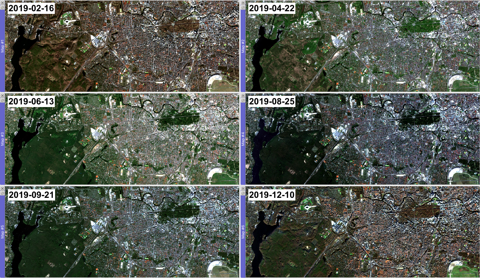 Read the seven Sentinel-2 images into the EnMAP-Box and visualize